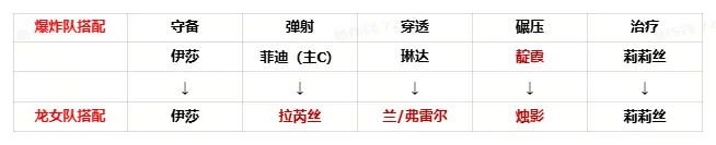 琳达→兰/弗雷尔——琳达替换成兰或者弗雷尔担任队伍副C,补足少量伤害。因为是副C,兰和弗雷尔哪个本体多优先考虑那个。不需要花费过多资源去获取本体升星。