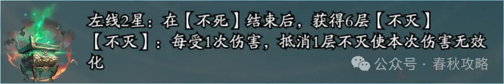 3、左线2星,不死后,抵挡6次伤害,相当于锁血了,这个差不多相当于不死后的下个回合无敌。
