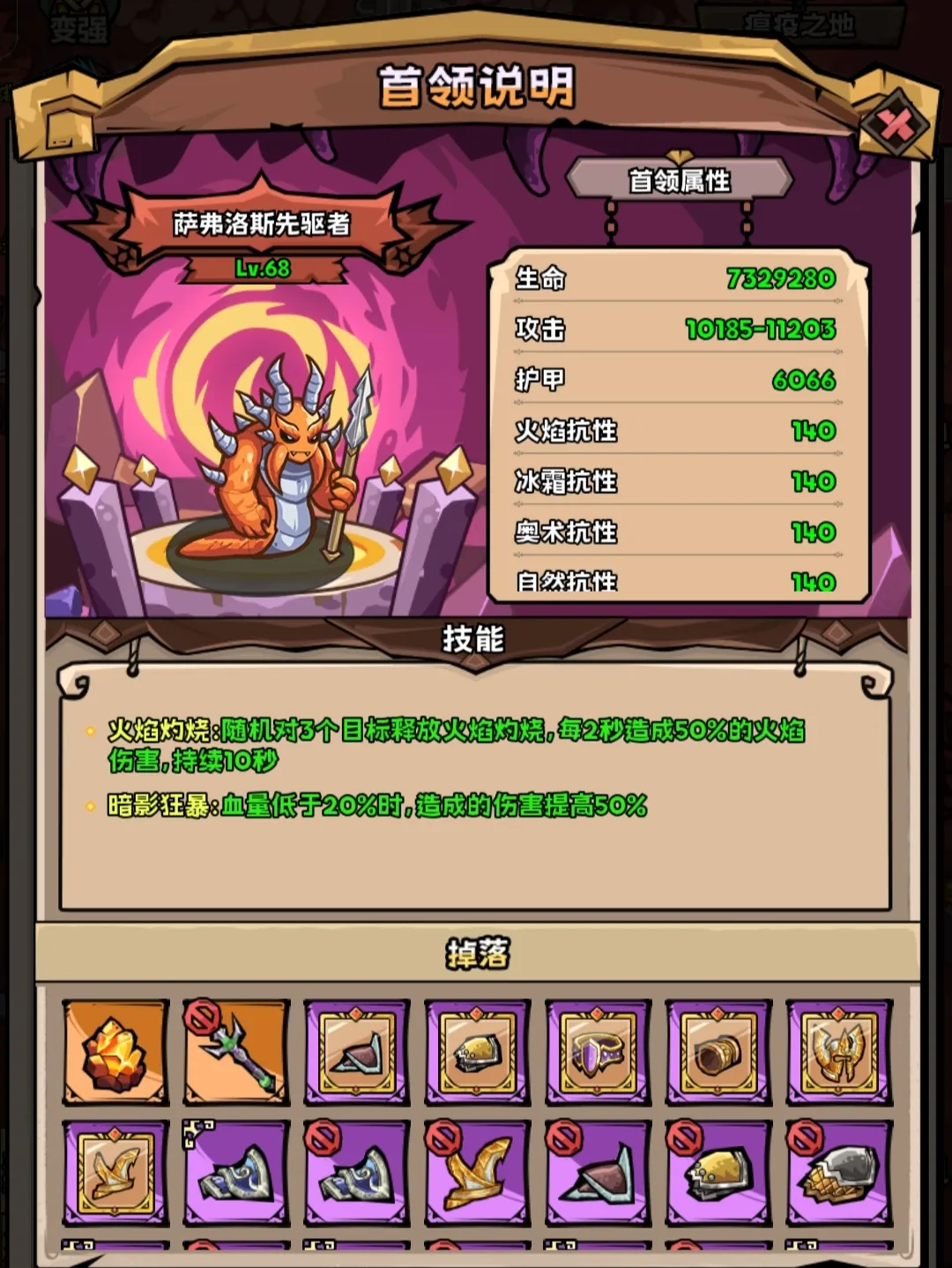 注意事项:该BOSS是一个连续技组合,先恐惧你,然后接着喷吐,让你无法躲避,开荒队伍很容易吃了恐惧就被喷吐秒杀。如果运气不好,有些非开荒队伍也有可能被狂暴后刚好恐惧+喷吐秒杀。