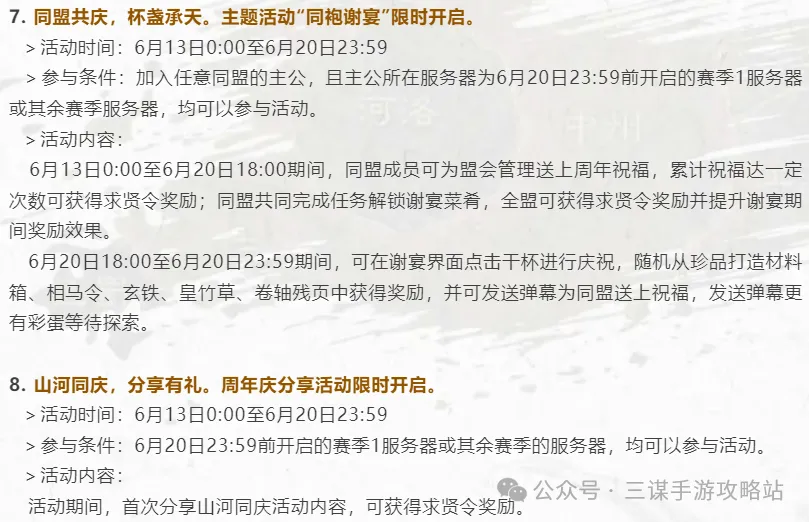 三国谋定天下1周年活动玩法奖励一览