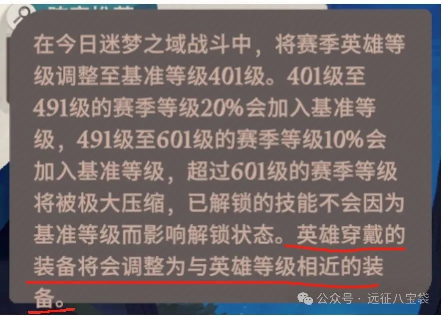 迷梦、巅峰这些赛季玩法都有装备抹平机制
