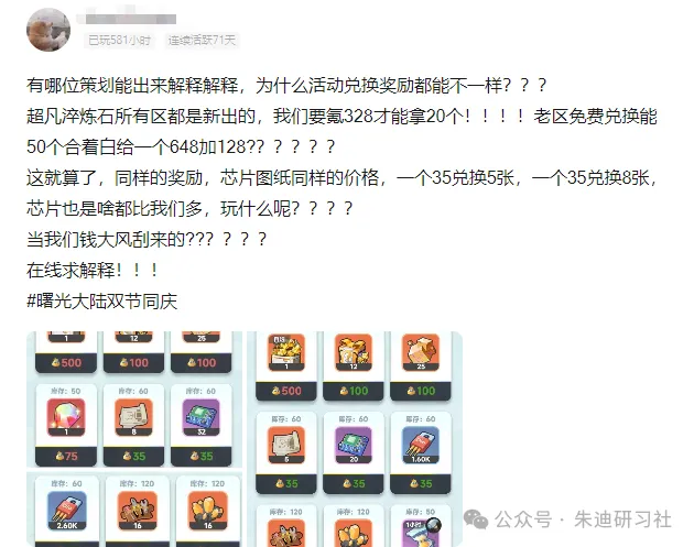 2、消息传开后也是引发了新区玩家的强烈吐槽,表示自己花同样的价钱才能得别人一半的资源,这不纯纯大怨种了吗?就比如同样的芯片图纸,花费一样的福袋,新区玩家只能得到5个,而老区能换8个!多了3个,将近一半之多了!