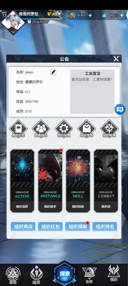 系统介绍:冒险家加入组织后,参加组织副本、组织战、组织秘境等活动获取资源,通过组织技能去提升英雄养成。
